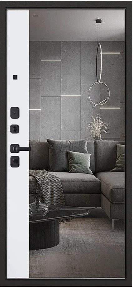Надежная входная Дверь Scandi с зеркалом премиум класса по цене 44 771 руб. Большая толщина стали защитит от проникновения в ваш дом, квартиру или коттедж. Используется очень качественная фурнитура: замки, цилиндры, ручки, защелки. Покрытие и отделка двери изготовлено под внимательным контролем производителя. Дверь имеет долгий срок службы и гарантию.
